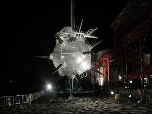 ユーモラスな形態に社会的なメッセージを込めた作品群によって国内外からの評価が高く、日本を代表するアーティストの一人であるヤノベ。既成のアートの枠組みを超える創造活動家に、造船所の遺構を美的空間に異化させる本プロジェクトのシンボルオブジェの制作を依頼。Vol.00「臨界の芸術論」に登場するミラーボールをモチーフにした巨大彫刻が、広大な敷地全体を照らしだす。